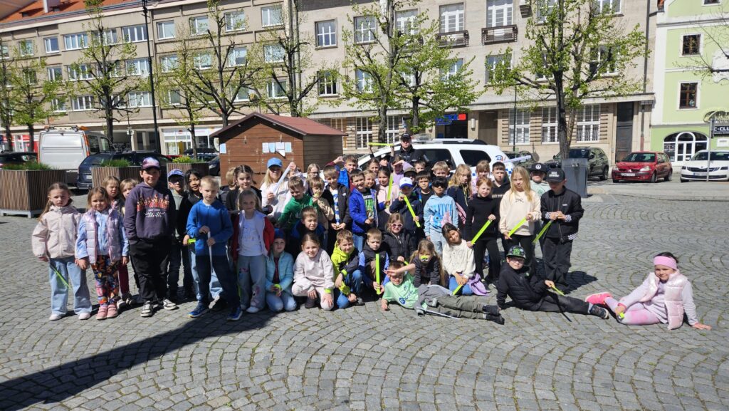 Beseda – hravou formou jak se bezpečně pohybovat na ulici a správně přecházet přes silnici. Pan policista dětem ukázal, proč jsou důležité reflexní prvky a jak se chovat, když je osloví někdo cizí.