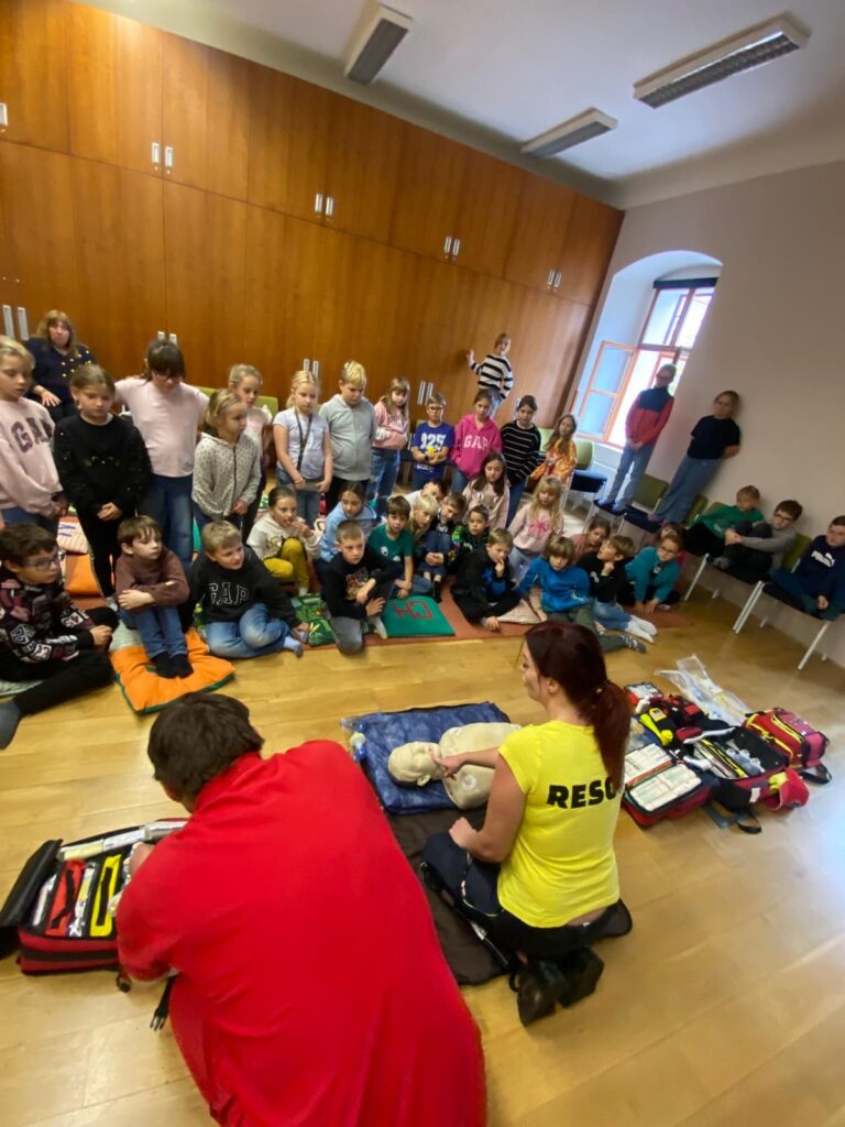 Ve čtvrtek šli naši žáci 2. a 3.tř. na zajímavou besedu do knihovny. Lektor – Jiří Novák, hasič a záchranář jim vyprávěl o zásadách bezpečného chování ve městě i v přírodě. Řekl jim, jak se zachovat při tísňovém volání – čísla, situace, správné reakce. O zásadách první pomoci – základní informace, ukázky. Vyprávěl nám, jaká je prevence úrazů a nebezpečných situací. Děkujeme za zajímavou a přínosnou besedu.