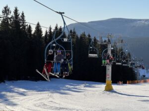 Lyžařský kurz pro 4. a 5. ročníky ve Velké Úpě je úspěšně zahájen. Včerejší příjezd patřil sněhovým hrátkám, smíchu a prvnímu seznamování se s horami.