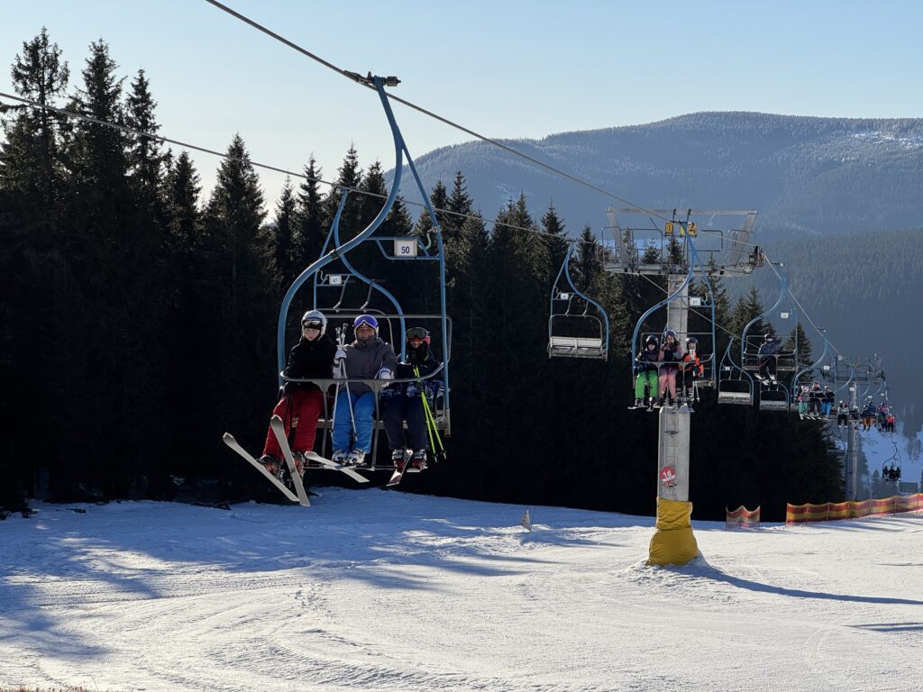 Lyžařský kurz pro 4. a 5. ročníky ve Velké Úpě je úspěšně zahájen. Včerejší příjezd patřil sněhovým hrátkám, smíchu a prvnímu seznamování se s horami. Dnes už jsme nazuli lyže a pustili se do výcviku naplno. I ti, kteří stáli na lyžích úplně poprvé, zvládli své první obloučky a překonali počáteční obavy. Děti jsou nadšené, snaživé a my máme radost z jejich prvních pokroků. Slibný start kurzu je za námi.