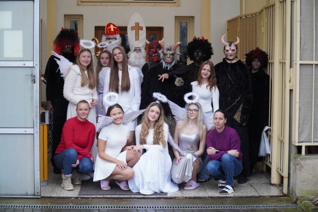 Za snahu dostaly drobnou nadílku 🎁, a ti, kteří během roku trochu zlobili, měli možnost své chování probrat s čerty. Deváťáci své role zvládli skvěle a postarali se o to, aby si všechny děti dnešní připomenutí tradice opravdu užily ❤️