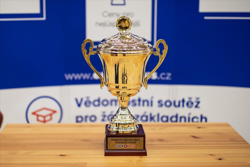 Ve čtvrtek 13. 11. 2025 jsme převzali  z rukou Daniela Kozáka ze společnosti TERRA-KLUB, o.p.s., pořadatele soutěže Eurorebus, putovní pohár za  první místo v celostátním žebříčku základních škol. Tento mimořádný úspěch je výsledkem svědomité a vytrvalé práce žáků 2. stupně, které po celou dobu soutěže odborně vedla paní učitelka Vostrá.