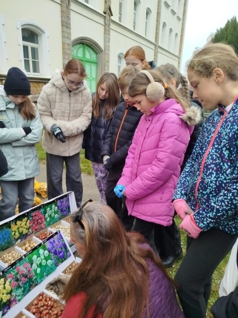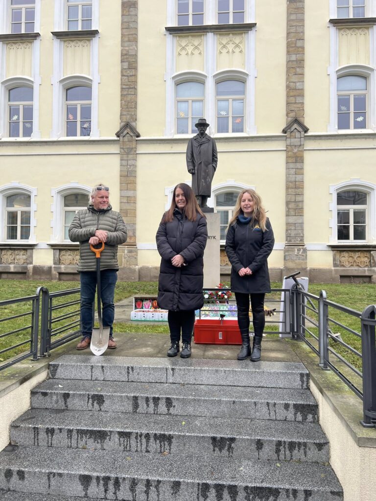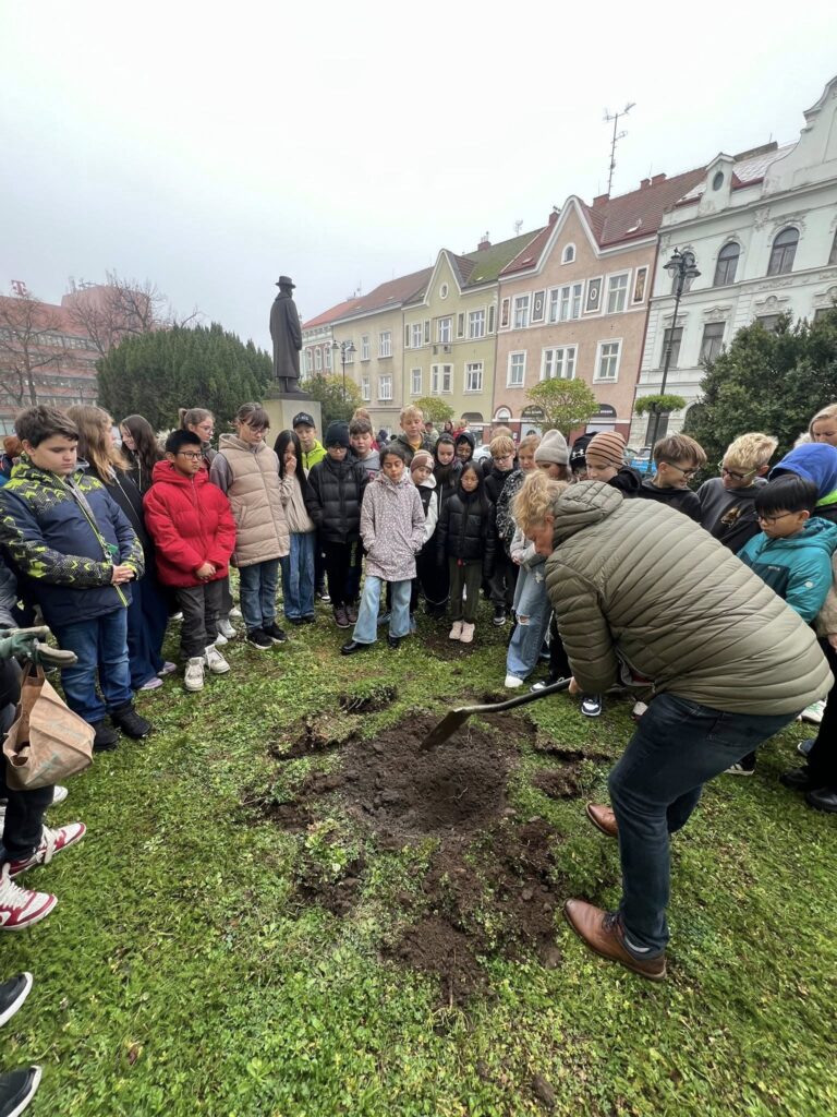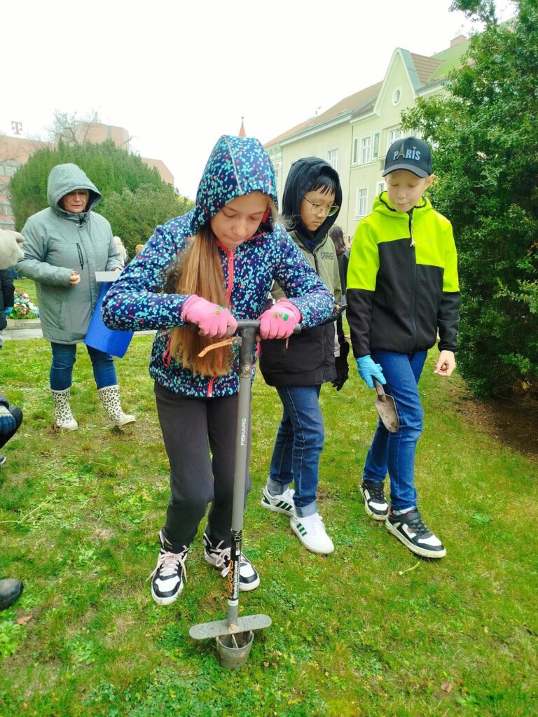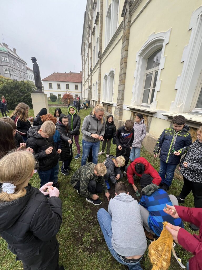 Dnes se naši páťáci zapojili do projektu Květinové město. Na prostranství u památníku T. G. Masaryka zaseli několik stovek cibulek tulipánů, narcisů, sněženek a dalších květin, které na jaře rozzáří prostor před školou.