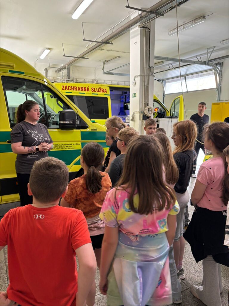 Naši starší žáci šli na exkurzi Zdravotní záchranné služby v Lounech. Záchranáři dětem názorně ukázali vybavení sanitek a děti si vyzkoušely resuscitaci.